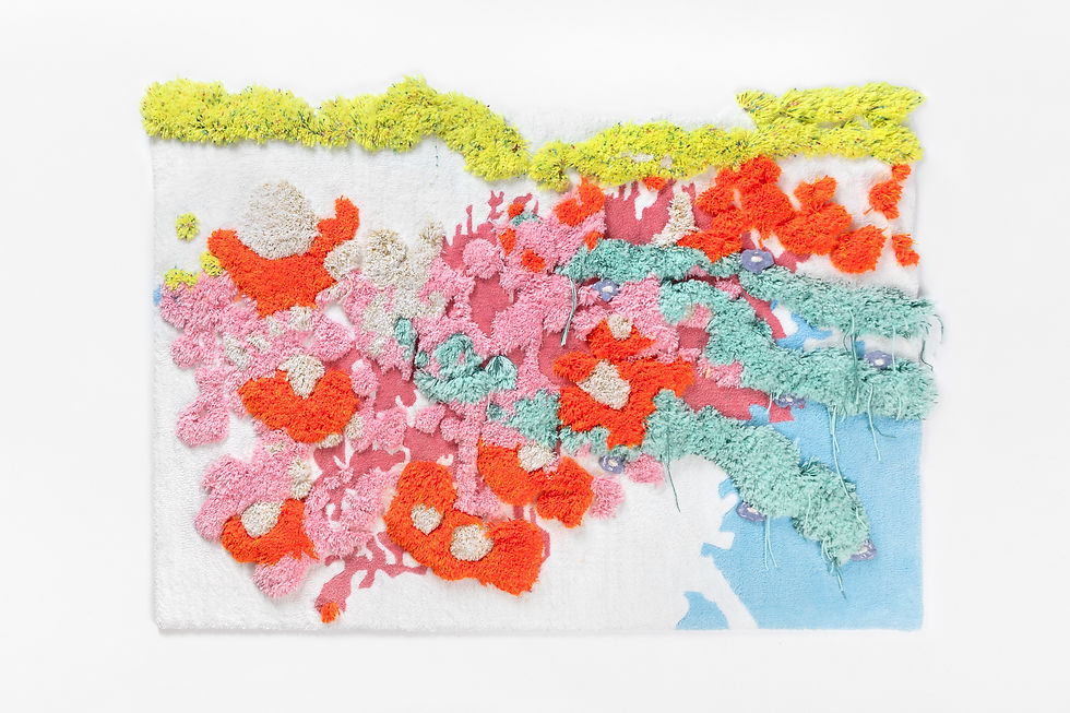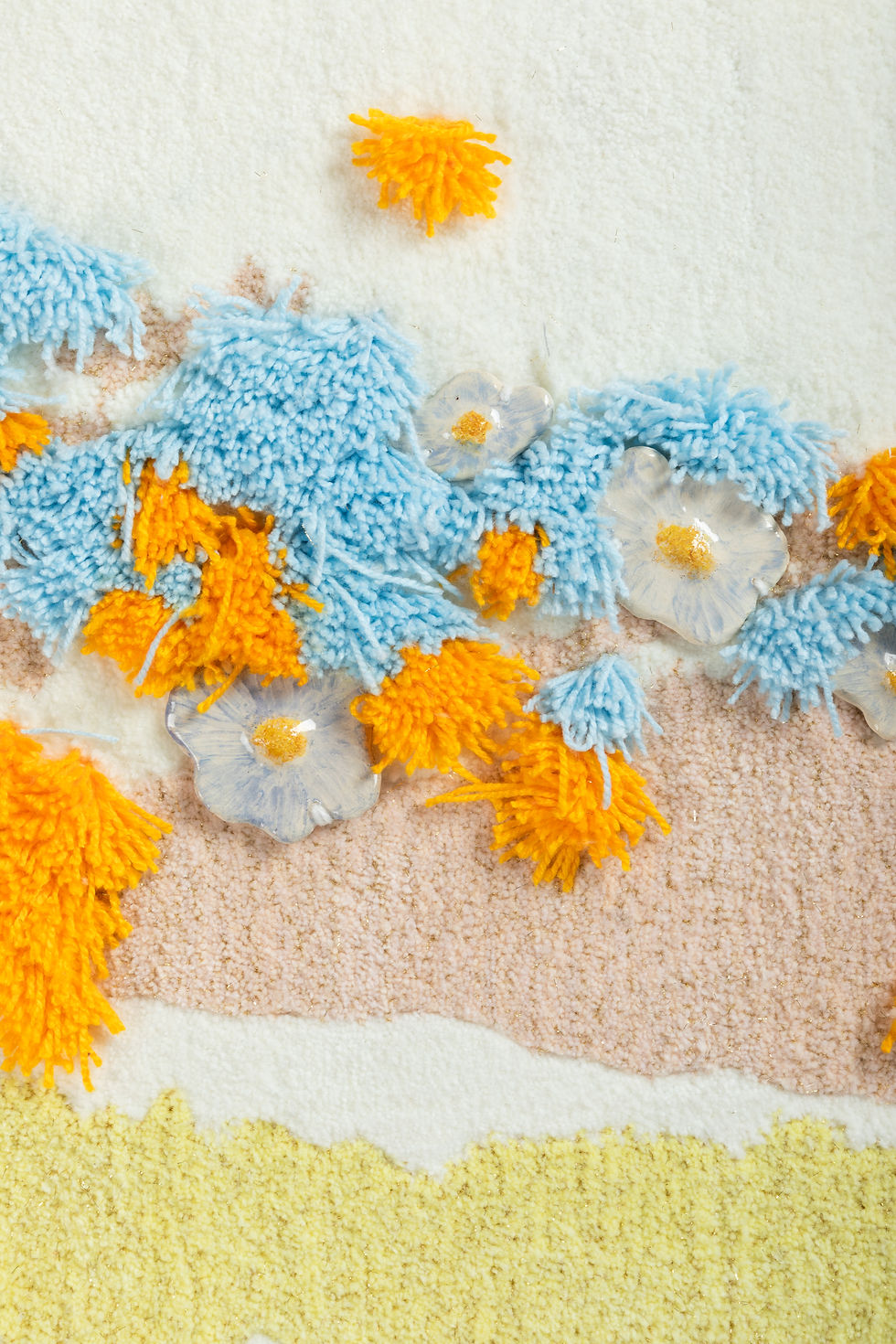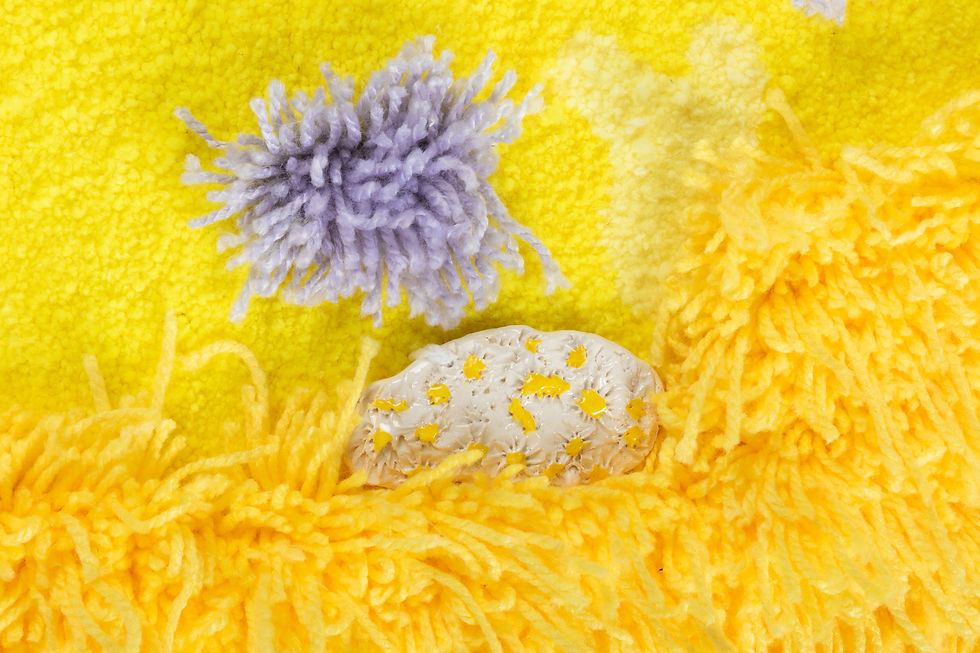 In the advent of the Northeastern summer, Heart Ego presents the personal show of Ruth Aragón (born in Monterrey, Mexico, 1993). The landscapes of Ruth, made in tufting technique, with incrustations of ceramic flowers and flower petals, contrast the dry environment of the artist’s place of origin, or perhaps show a brief moment of the floral explosion in the Northeastern spring. “Landscapes that grow after rain and during sunny days,” as the artist describes them herself.