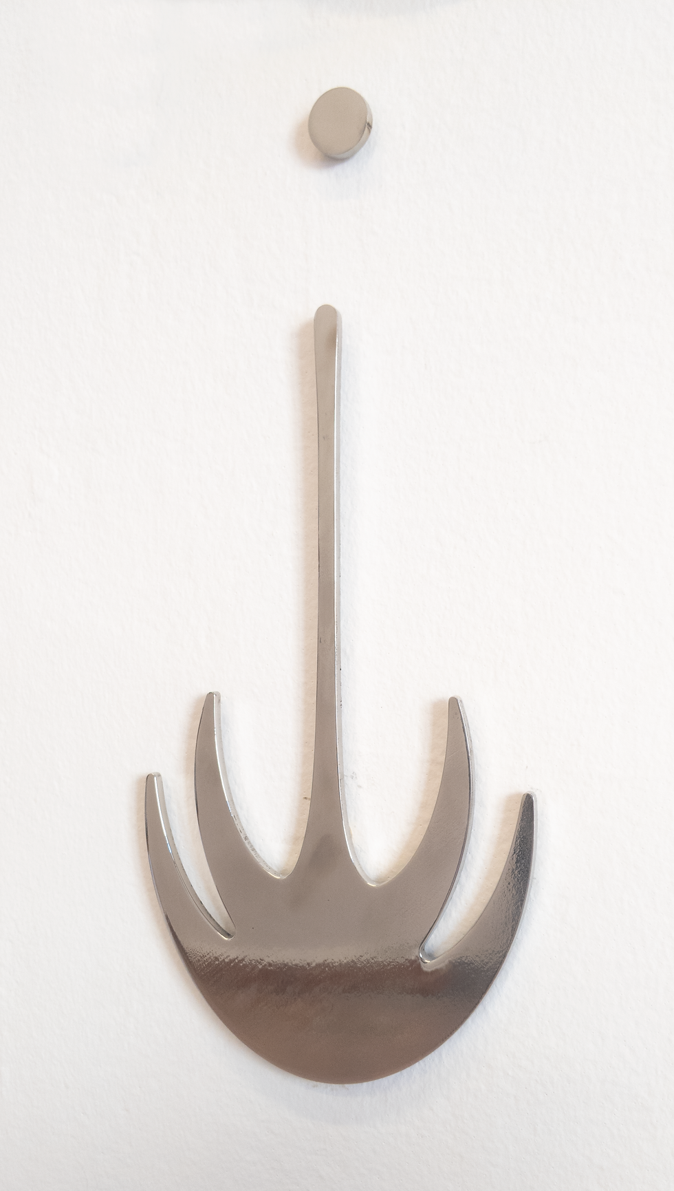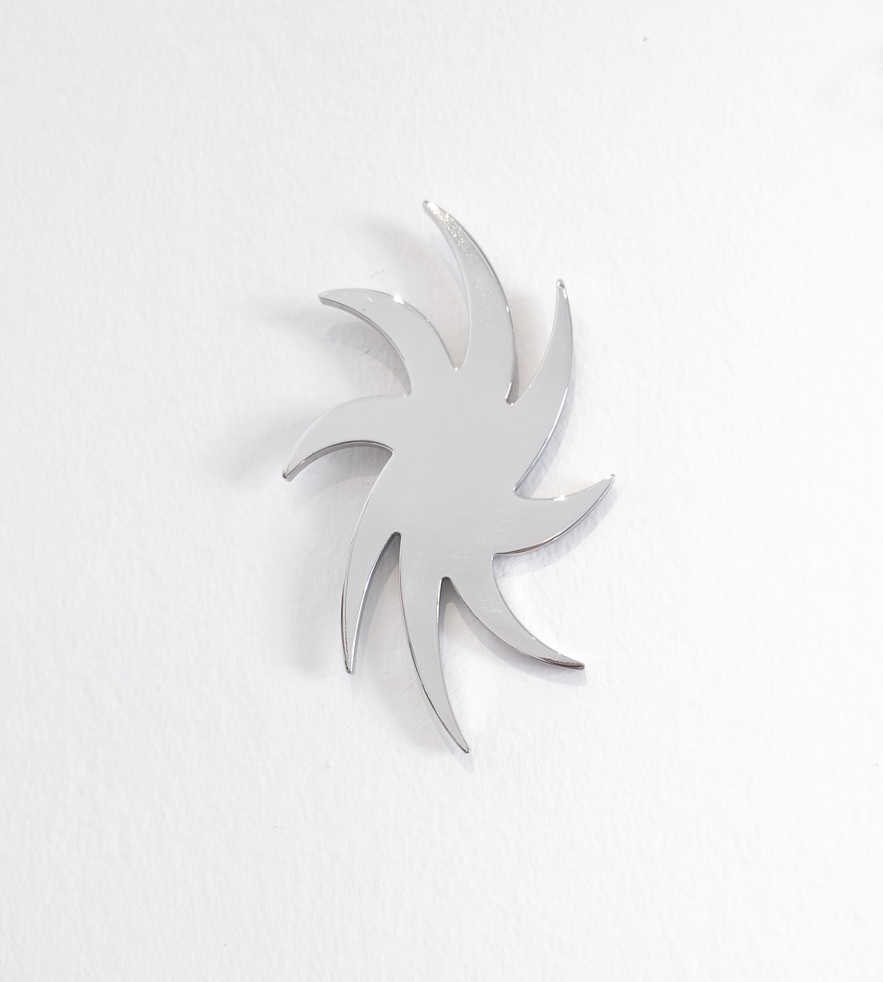 We finish introducing ourselves to the artist's current aesthetics with a triptych of found landscapes. A panorama that is made up of a copper and zinc alloy (brass) to which tin is adhered through electrodeposition. These pieces create a horizon of mountains and clouds that become increasingly faint, making us lose ourselves in the horizon of the universe in which Mariana would like to live, which she creates with each of her pieces.