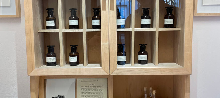 The first of the projects presented in this exhibition, called Materia Mnemica, was carried out in 2018 at the inSite / Casa Gallina space in Mexico City, under the curatorship of Josefa Ortega. It was a project carried out in collaboration with residents of the Santa María la Ribera neighborhood where, based on the symbolic appropriation of the production of homeopathic medicines, the participants and the artist extracted substances from the objects that caused them some type of harm to find . in them a principle of healing. The recognition of the source of pain and its sublimation into a healing substance were the operating mechanisms of this piece motivated by the idea of self-care as an act of freedom and socialization of the self and memory.